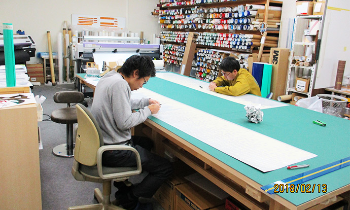 私たちはカッティング、インクジェットの出力加工、トラック・バス等のラッピング、電車の内装、什器のラッピング、店舗の内外装等の施工を承っております。シートのあらゆる可能性を考え、技術と知識の向上に日々務めています。