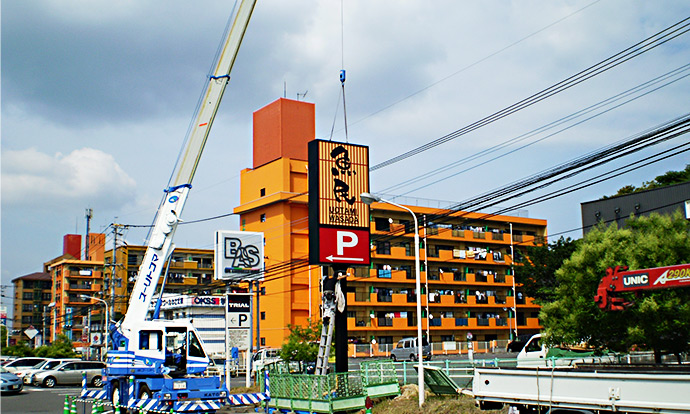 総合看板から、ガラスフィルムまで幅広く施工いたします。一級ガラスフィルム技能士がおり、建物・店舗ガラスのフィルム貼りや、乗用車・トラック・バス・商用車などのカーマーキングもいたしますので何でもお気軽にご相談下さい。