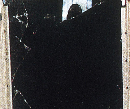 フィルムを貼ったガラスは、細かな亀裂が生じ、ガラス粉が散っただけで飛散はほとんどありませんでした。