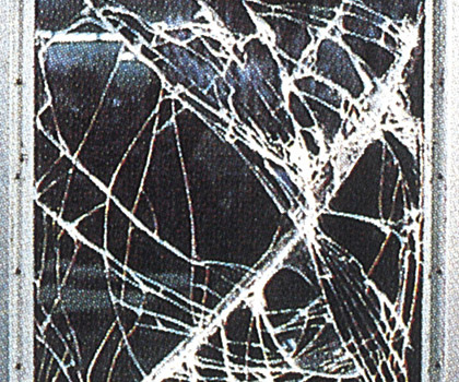 フィルムを貼ったガラスは、衝撃部が抜け落ちることはありませんでした。