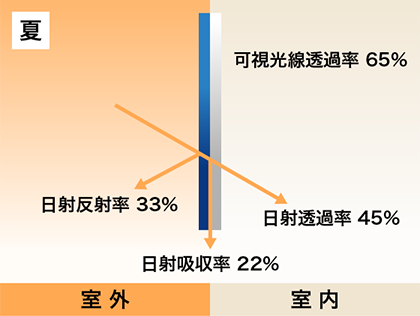 太陽からの熱線を遮断し、室温の上昇を防ぎ、冷房コストを節減します。