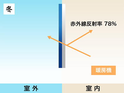 暖房機からの熱を反射し、戸外に逃がさず暖房コストを節減します。