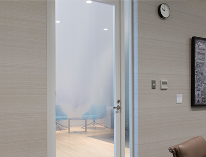 装飾フィルムを貼ることで、ガラスにさまざまな表情を持たせることができ、透明感や透過光を生かした独特の空間演出を実現します。